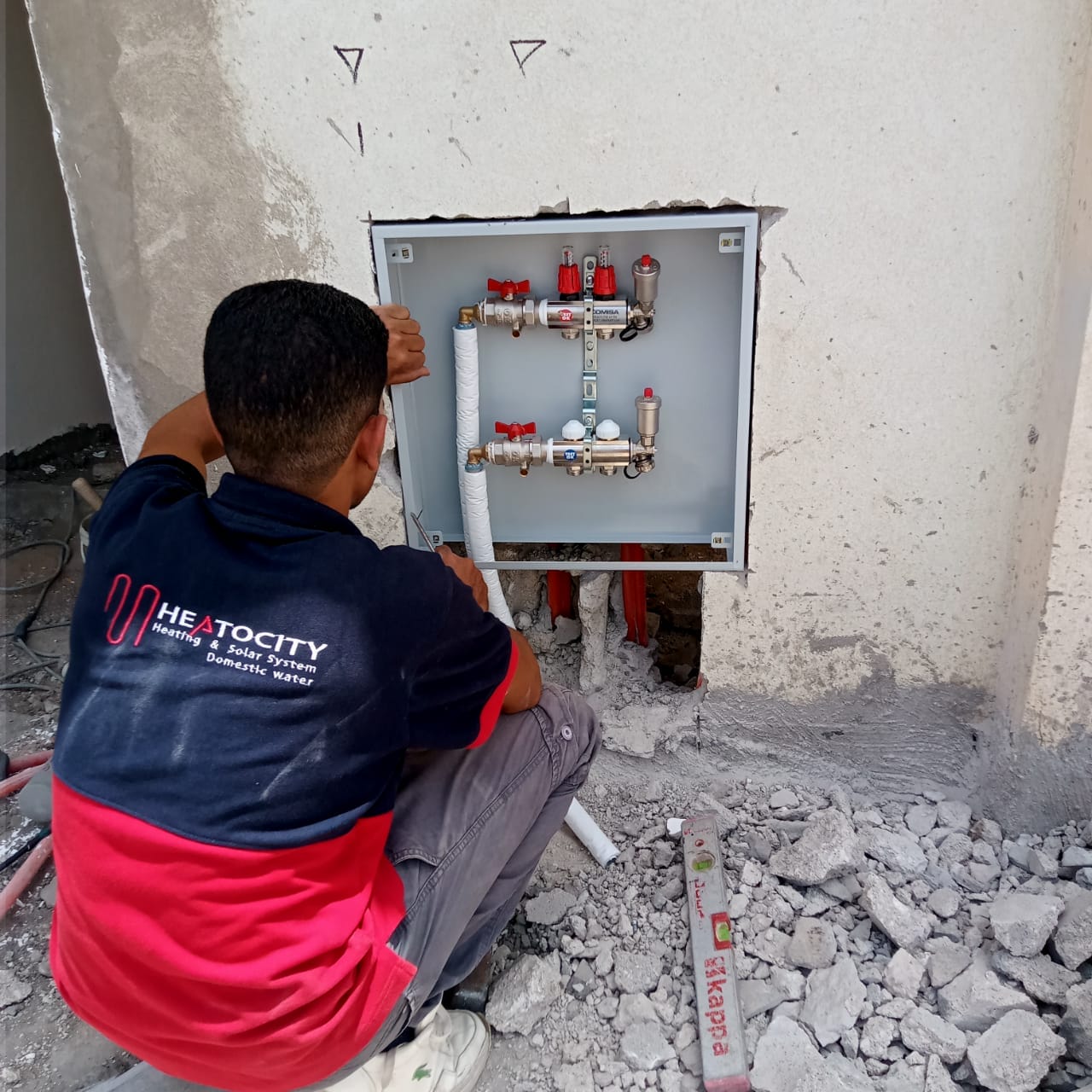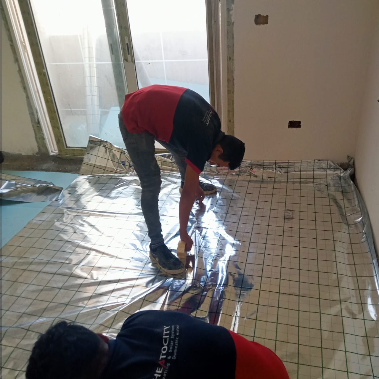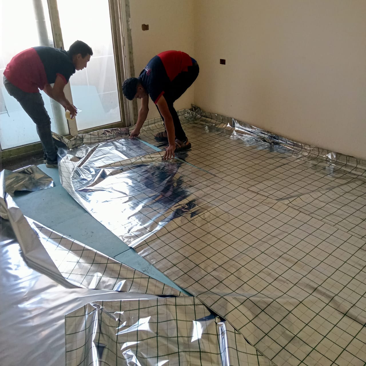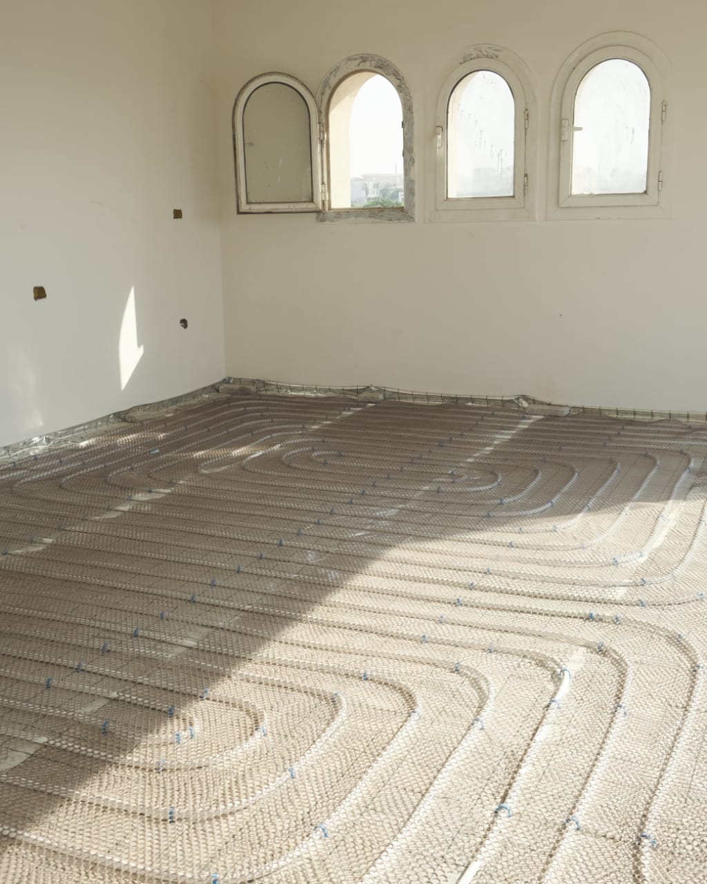 لقد قمنا بتأسيس تدفئة أرضية ( تحت البلاط ) مستخدمين مواسير بيكس ايطالي عالية الجودة واستخدام مادة عازلة وهي الفوم العازل الالومنيوم الحراري لمنع تسرب الحرارة حيث تقوم اولا وقت التأسيس للفيلا بوضع المادة العازلة وبد ذلك إنشاء شبكة المواسير على شكل دائري كما أن نظام التدفئة الأرضي ويشمل هذا المشروع ايضا صواعد البيكس بجميع مشتملاته يتميز بعدة مميزات والتي منها أنه يغطي مساحات كبيرة ويعمل على تدفئة المكان بأكمله كما أنه يوفر في استهلاك الطاقة كما أن النظام لا يحتاج في تركيبه سواء التعامل مع شركة ذات خبرة ولا يحتاج ايضا الى صيانة مستمرة مثل الوسائل التقليدية لذلك هذا النظام هو الأمثل في المؤسسات والفيلات والشقق الكبيرة لأنه يعمل على تدفئة جميع الغرف